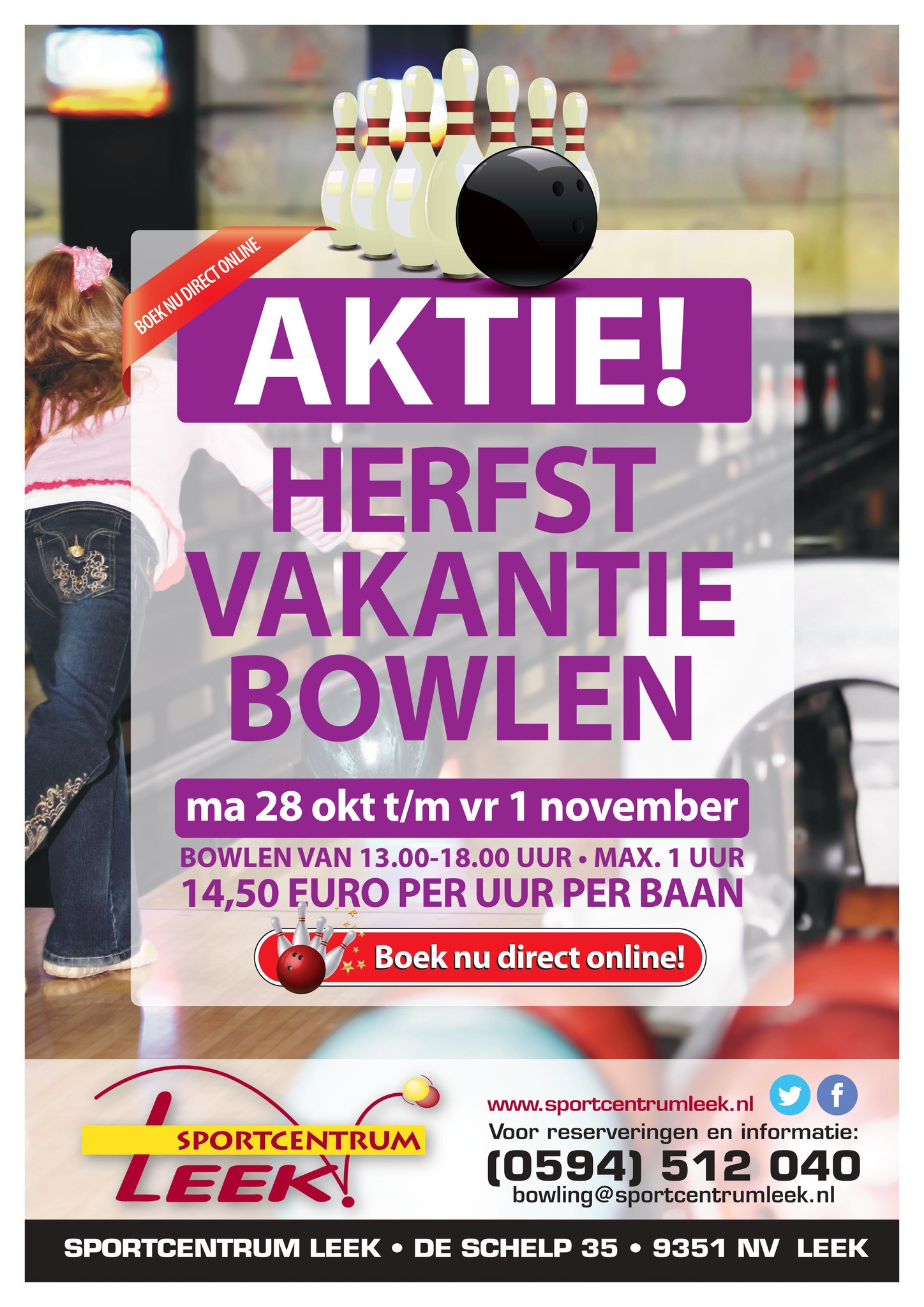 Speciaal voor de herfstvakantie hebben we een knallende actie! Kom bowlen in de week van maandag 28 oktober t/m vrijdag 1 november voor slechts €14,50 per uur per baan!