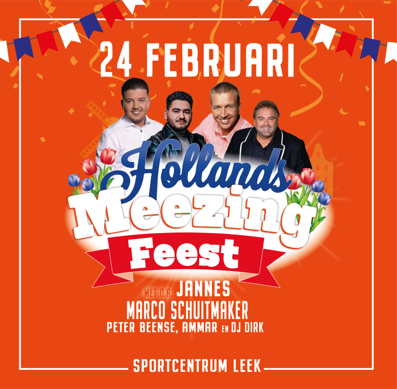 Heerlijk vals meezingen, samen biertjes drinken en beuken op de beste feesthits? Dat kan allemaal tijdens het Hollands Meezingfeest op zaterdag 24 februari 2024 in Sportcentrum Leek.