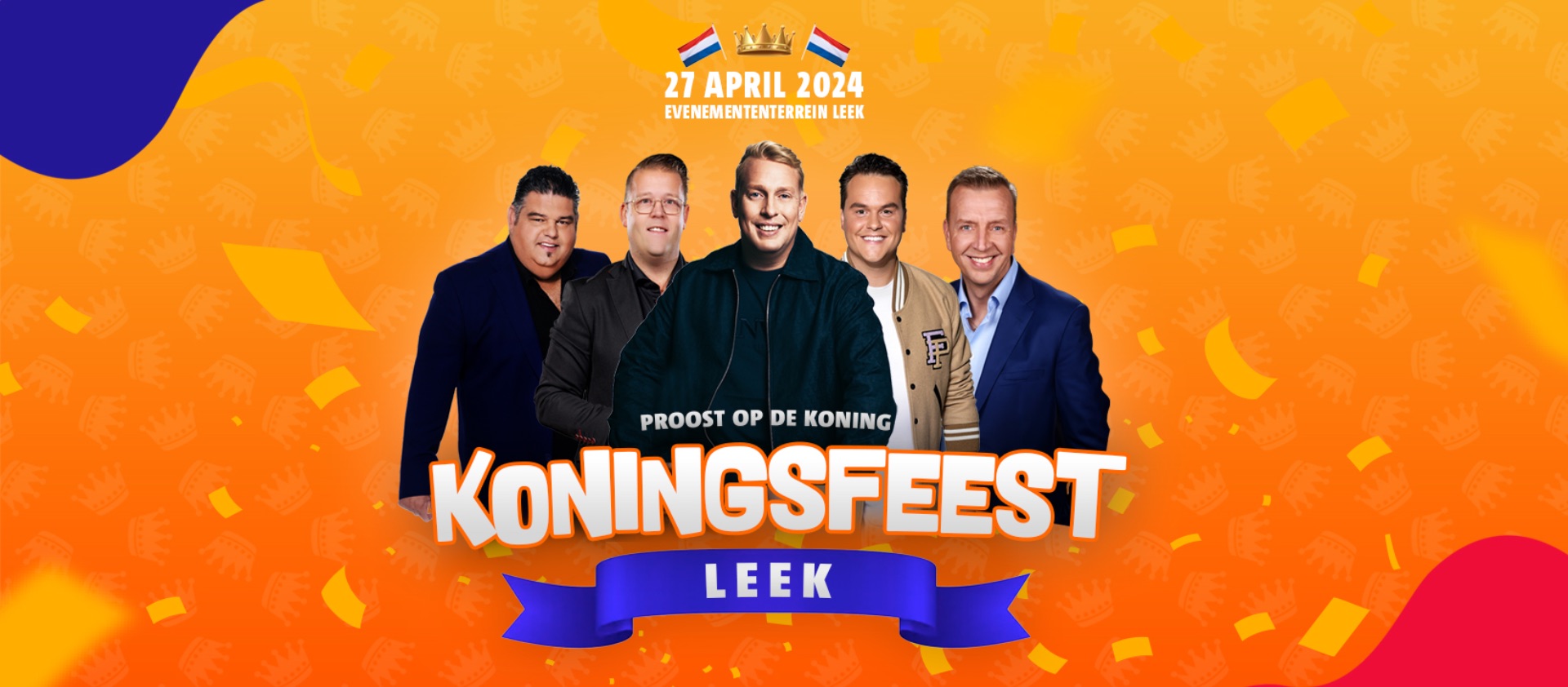 Met trots presenteren wij de volledige line-up van Koningsfeest Leek 2024! Dit jaar proosten we op de koning met live optredens van: