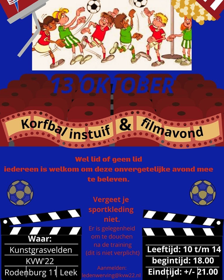 Speciaal voor de kinderen uit groep 7 en 8 word deze avond georganiseerd, zo kun je kennis maken met korfbal en misschien wel je toekomstige teamgenoten. Je mag ook gerust een vriend of vriendin meenemen. Sportkleding is erg handig.