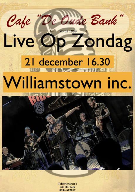 Op zondag 21 december komt Williamstown inc. een feestje bouwen in Cafe De Oude Bank.