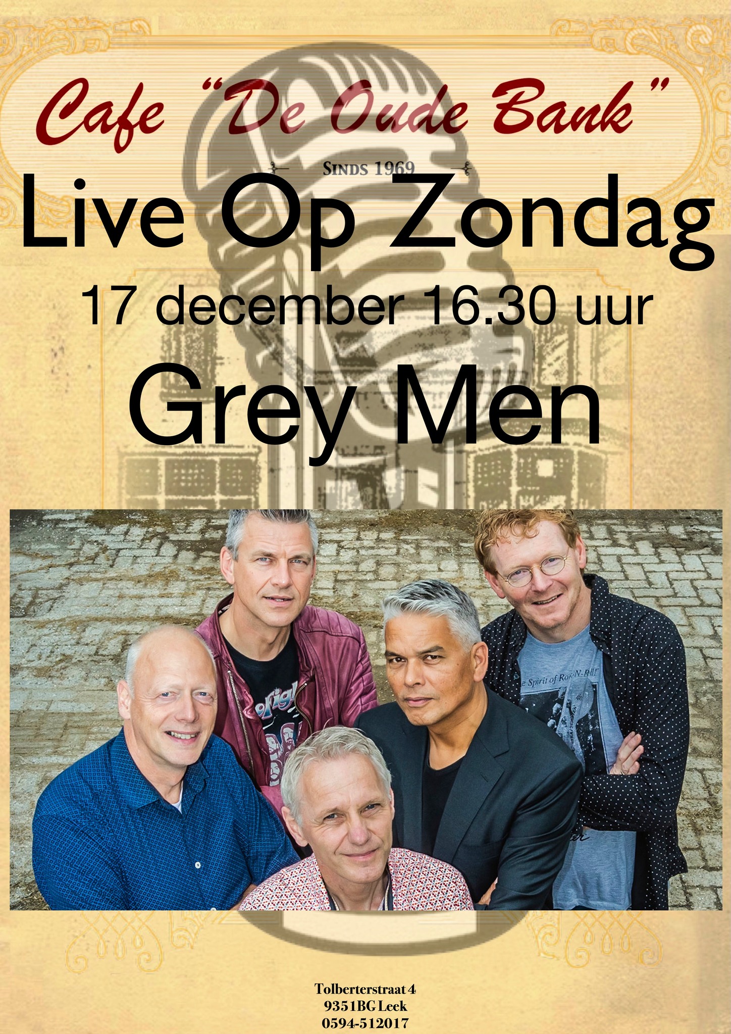 Geniet bij Café de Oude Bank van een gezellige sfeer, heelijk speciaalbier en fijne muziek tijdens Live op zondag. Deze editie met optredens van Greymen is op 17 december om 16.30 uur.