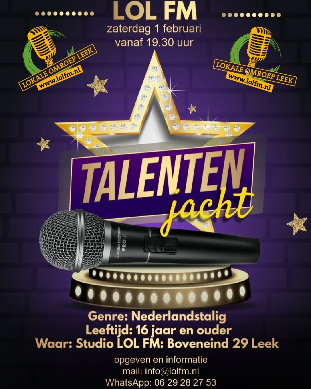 Aanmelden kan door een mailtje te sturen naar info@lolfm.nl of een appje te sturen naar 06 29282753.