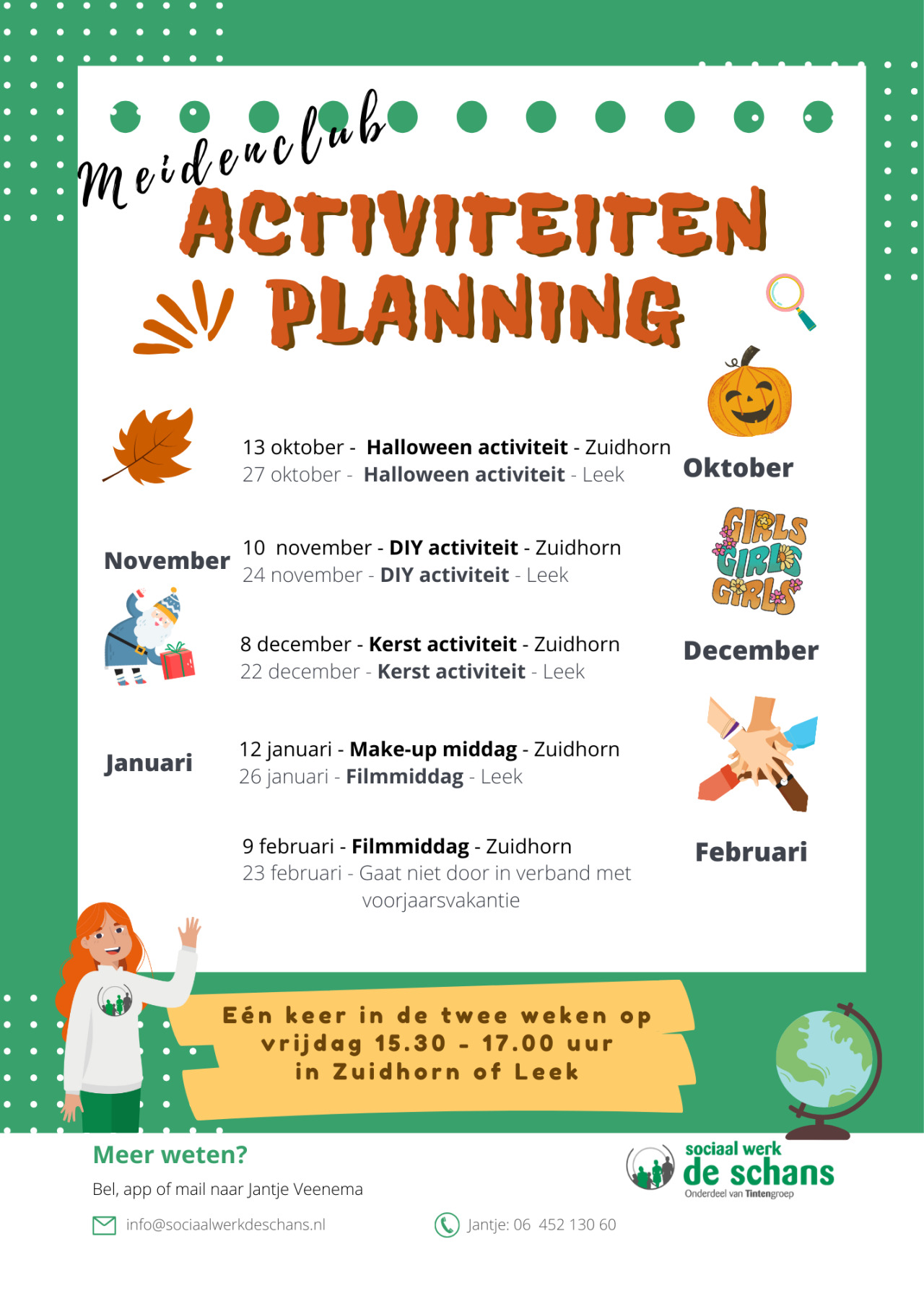 Of je nu op zoek bent naar vriendschap, plezier of een plek om openhartig te praten over belangrijke onderwerpen, de Meidenclub biedt een warm welkom. De bijeenkomsten vinden plaats in Zuidhorn of Leek, afhankelijk van de maand. Wil je graag meedoen en deelnemen aan onze gezellige groep?