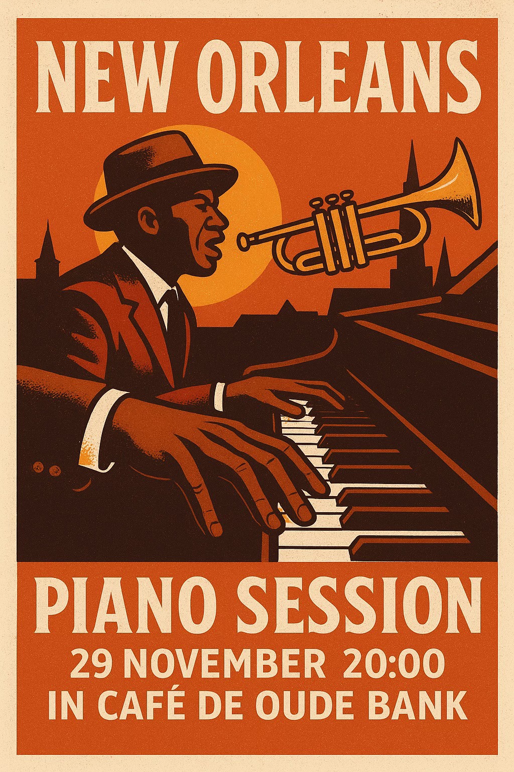 Zaterdag 29 november verandert Café De Oude Bank in een pianobar uit New Orleans.