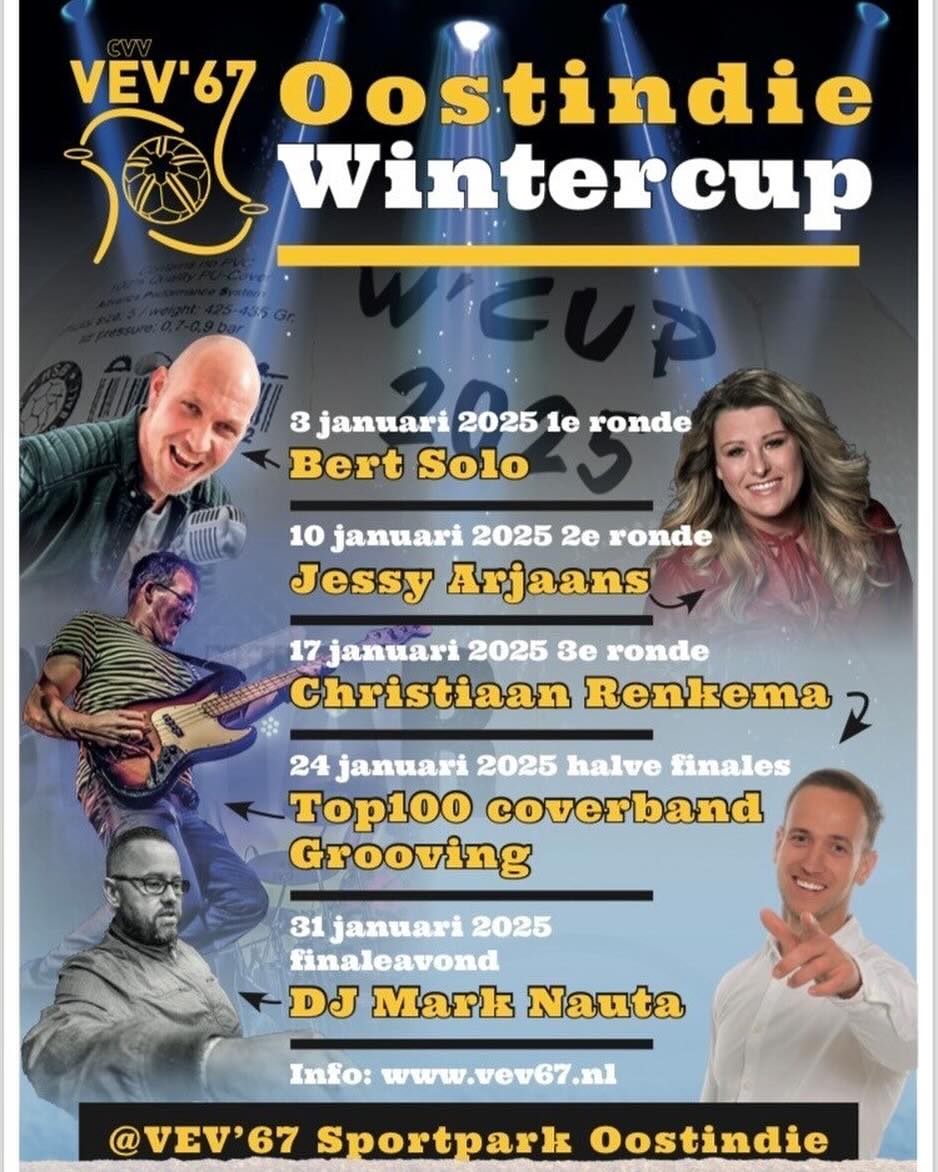 Verschillende spannende wedstrijden en live muziek, tijdens de Oostindie Wintercup kun je dit allemaal vinden bij CVV VEV'67.