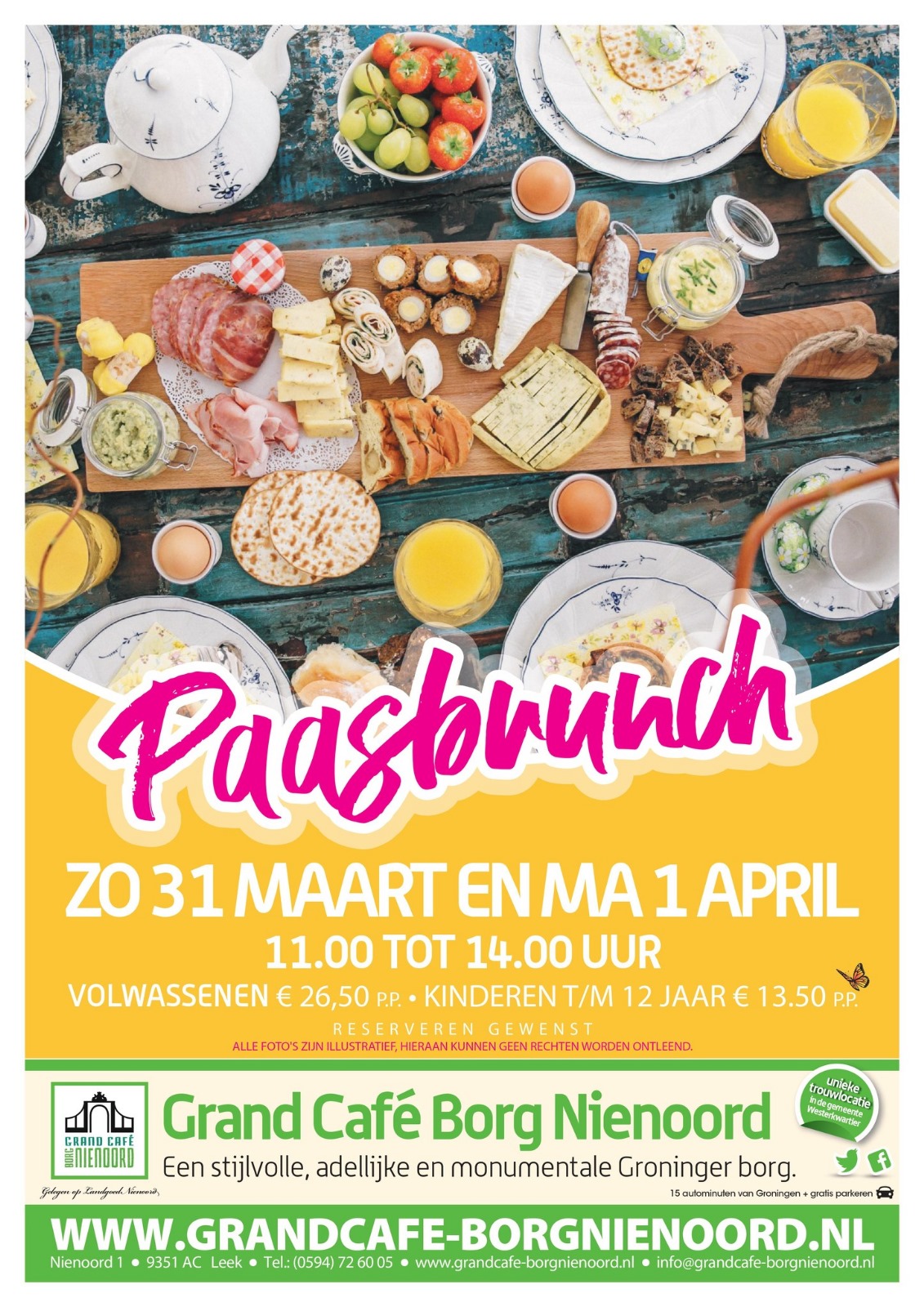 Vier Pasen op een heerlijke manier bij de Paasbrunch van Grand Café Borg Nienoord. Op 31 maart en 1 april kun je van 11.00 tot 14.00 uur genieten van een uitgebreid assortiment aan lekkernijen. Zo hoef jij niet lang in de keuken te staan en kun je ongedwongen genieten van heerlijke Paasdagen.