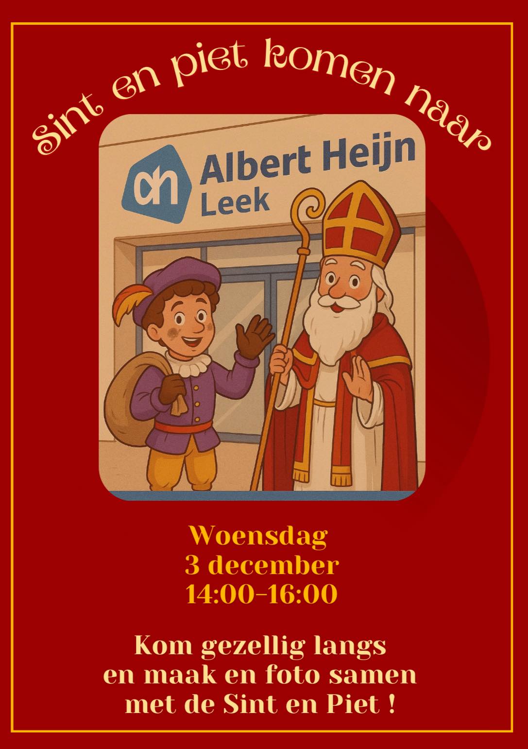 Op woensdag 3 december bezoekt Sinterklaas samen met zijn piet de Albert Heijn in Leek.