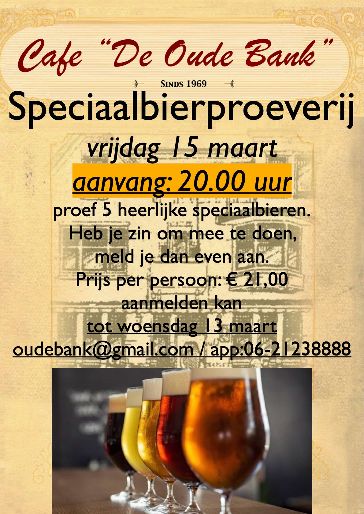 Aanmelden is verplicht en kan tot woensdag 13 maart. Stuur dan even een mailtje naar oudebank@gmail.com of stuur een appje naar 0621238888.