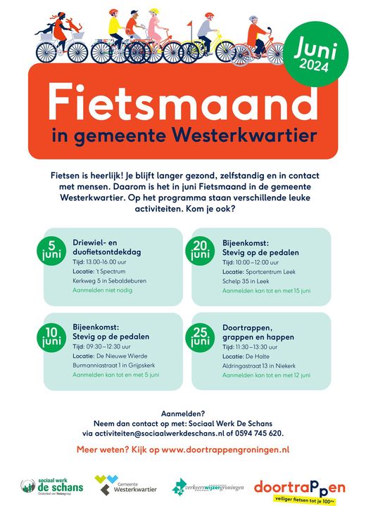 Leer alles over veilig fietsen tijdens de informele bijeenkomst.Er worden handige tips en adviezen gegeven om zelfverzekerd en veilig de weg op te gaan. Daarnaast gaan we aan de slag met simpele oefeningen om fit te blijven op de fiets. Doe jij ook mee? Dan blijven we met z'n allen genieten van fietsen.