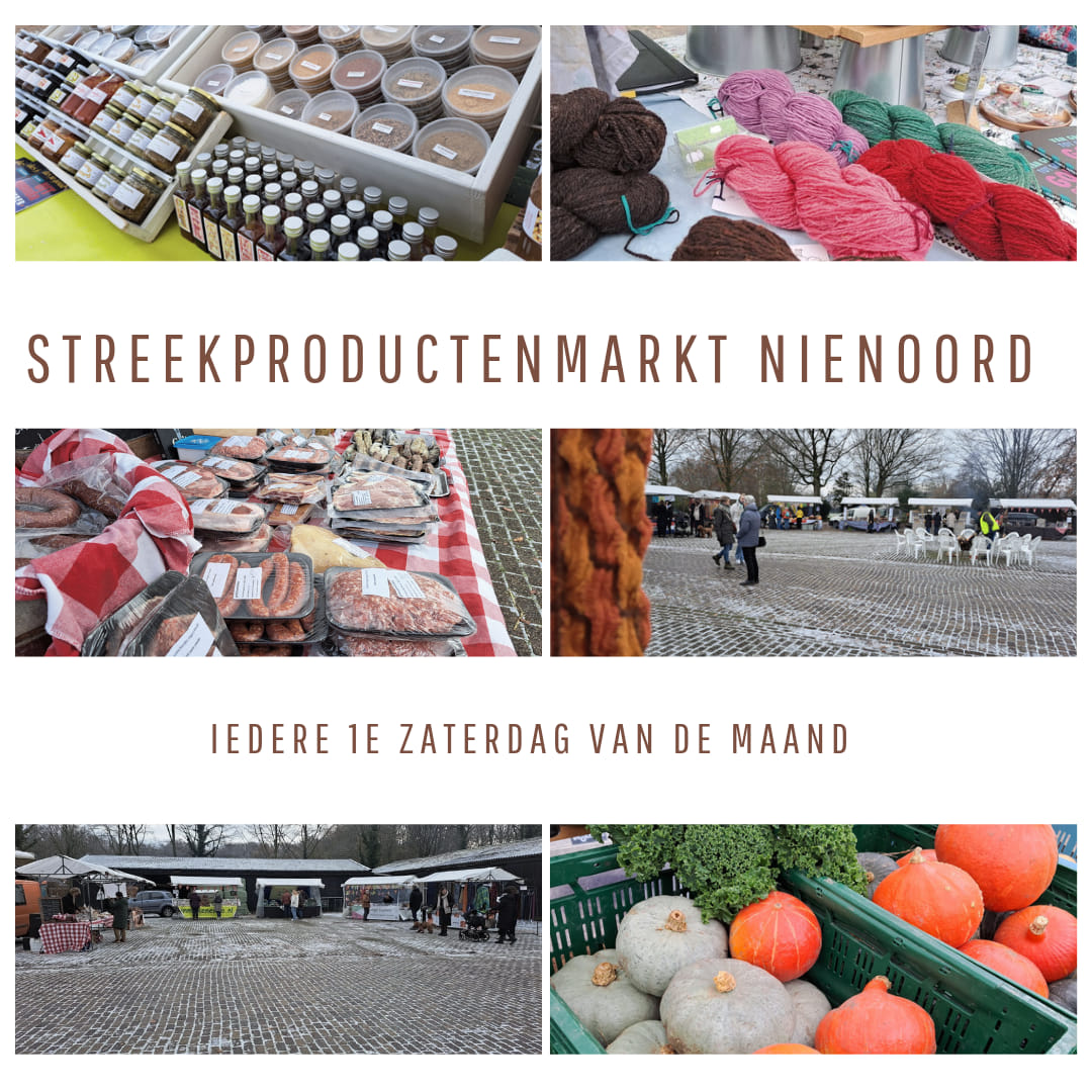 Op zaterdag 6 april is er weer een nieuwe editie van de Streekproductenmarkt Nienoord. Op de markt is er een groot assortiment aan verse, eerlijke en lokale producten te vinden. Zoals brood, verse groenten en boerenkaas. Naast etenswaren kun je ook planten, wol en sieraden vinden.
