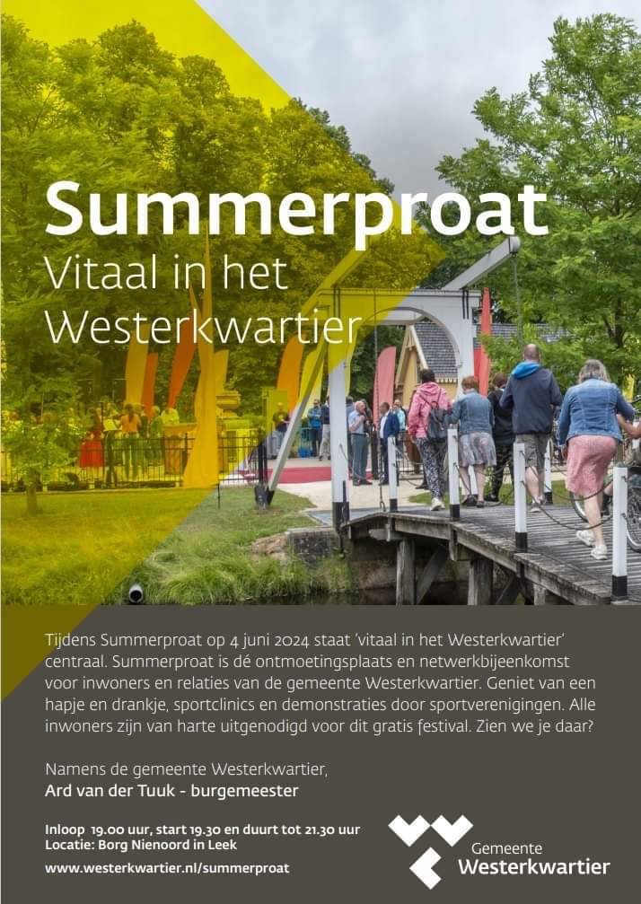 Op dinsdagavond 4 juni organiseert de gemeente Westerkwartier een nieuwe editie van het jaarlijkse festival Summerproat.