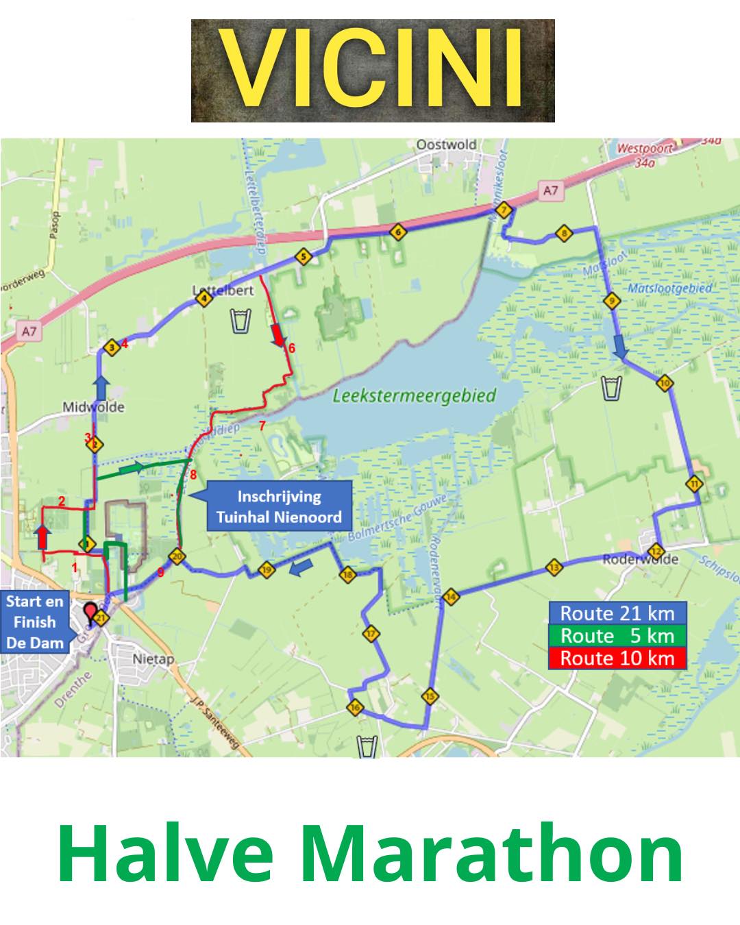 12.50 uur - Vicini Halve Marathon 21,1 km (tijdslimiet 2,5 uur)
