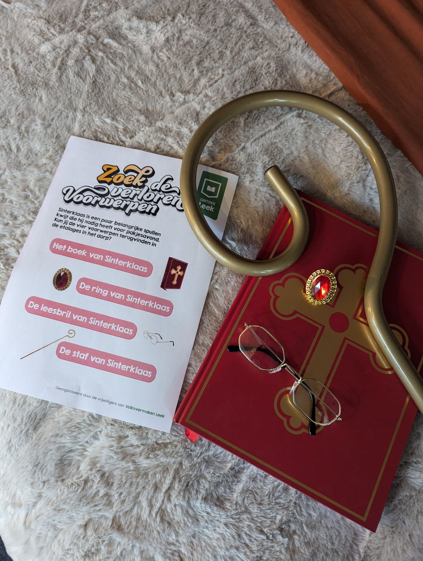 Oeps, tijdens het winkelen in Leek is Sinterklaas een paar belangrijke spullen kwijtgeraakt die hij écht nodig heeft voor 5 december! Hij is zijn boek, leesbril, ring en staf kwijt.