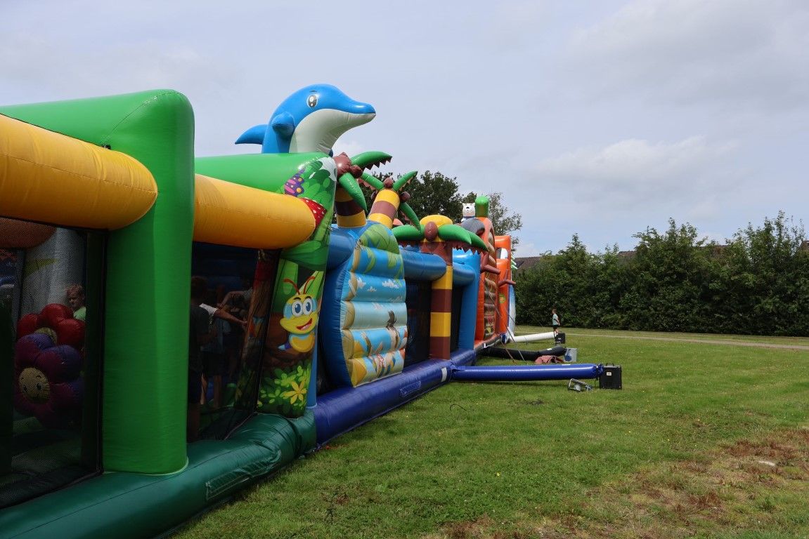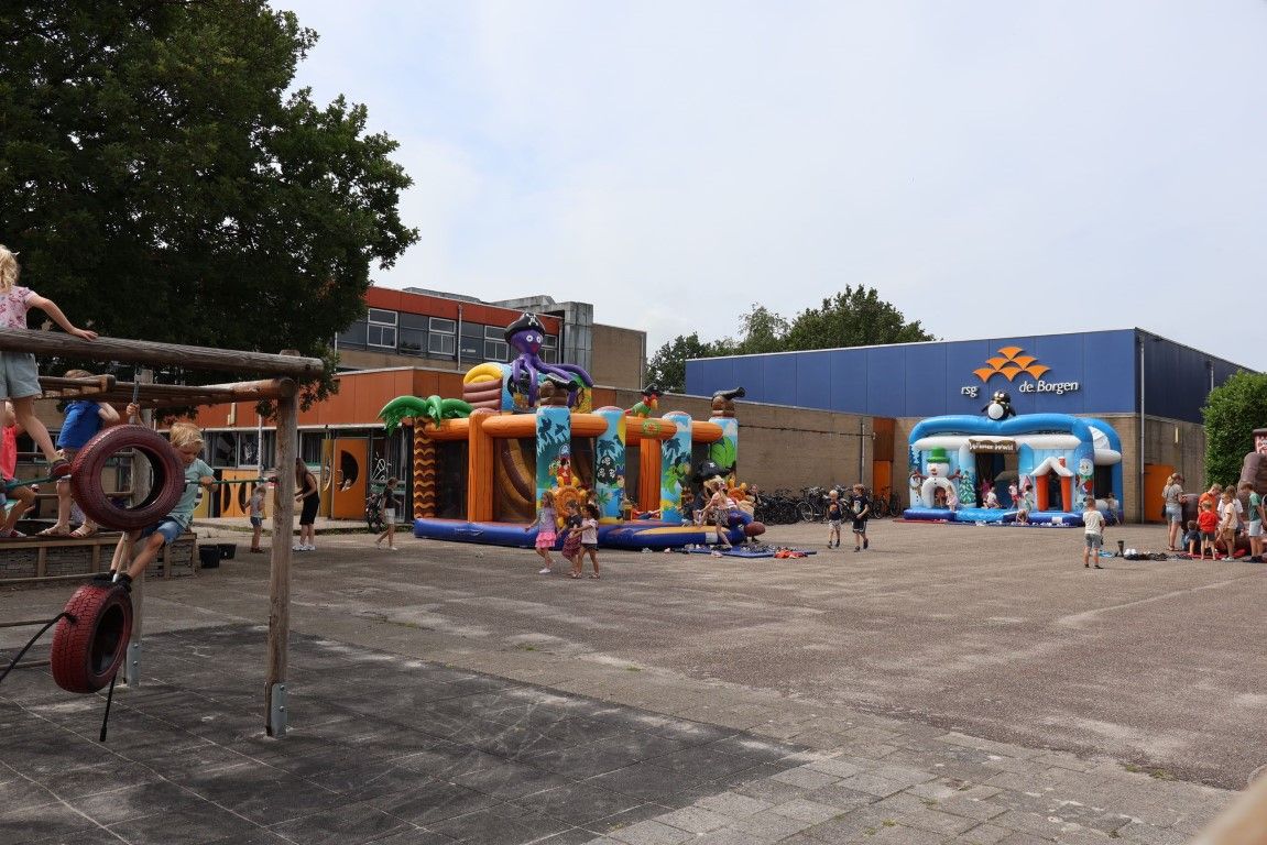 De kinderen van De Hasselbraam hebben van hun laatste schooldag op de tijdelijke locatie een groot feest gemaakt. Op hun schoolplein organiseerden ze in het voorjaar een sponsorloop waarmee ze genoeg geld inzamelden om een geweldige feestdag te kunnen organiseren. En vandaag was het zover. De dag zat vol activiteiten zoals springkussens, een enorme stormbaan, diverse spelletjes, friet van De Friterie en ijs van Rianne's Boer'n ijs.