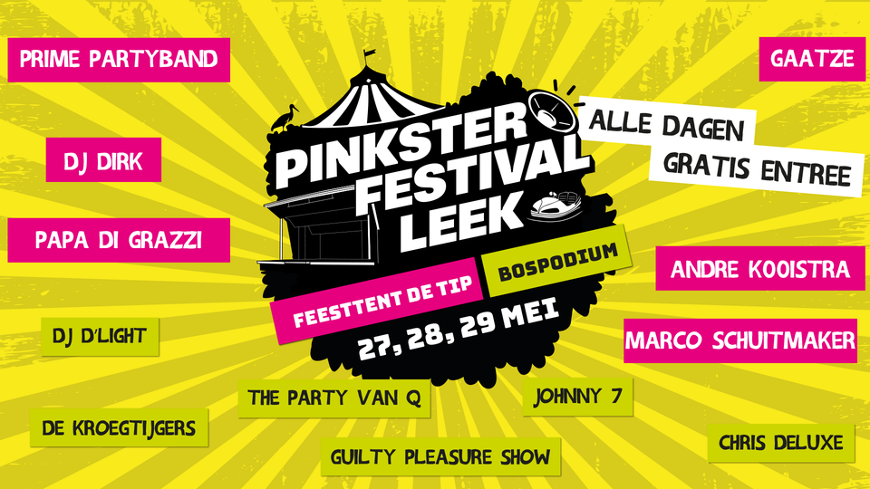 Het is niet de vraag of je gaat feesten tijdens het Pinksterweekend in Leek bij Podium Nienoord en in het centrum, maar waar ga je feesten?