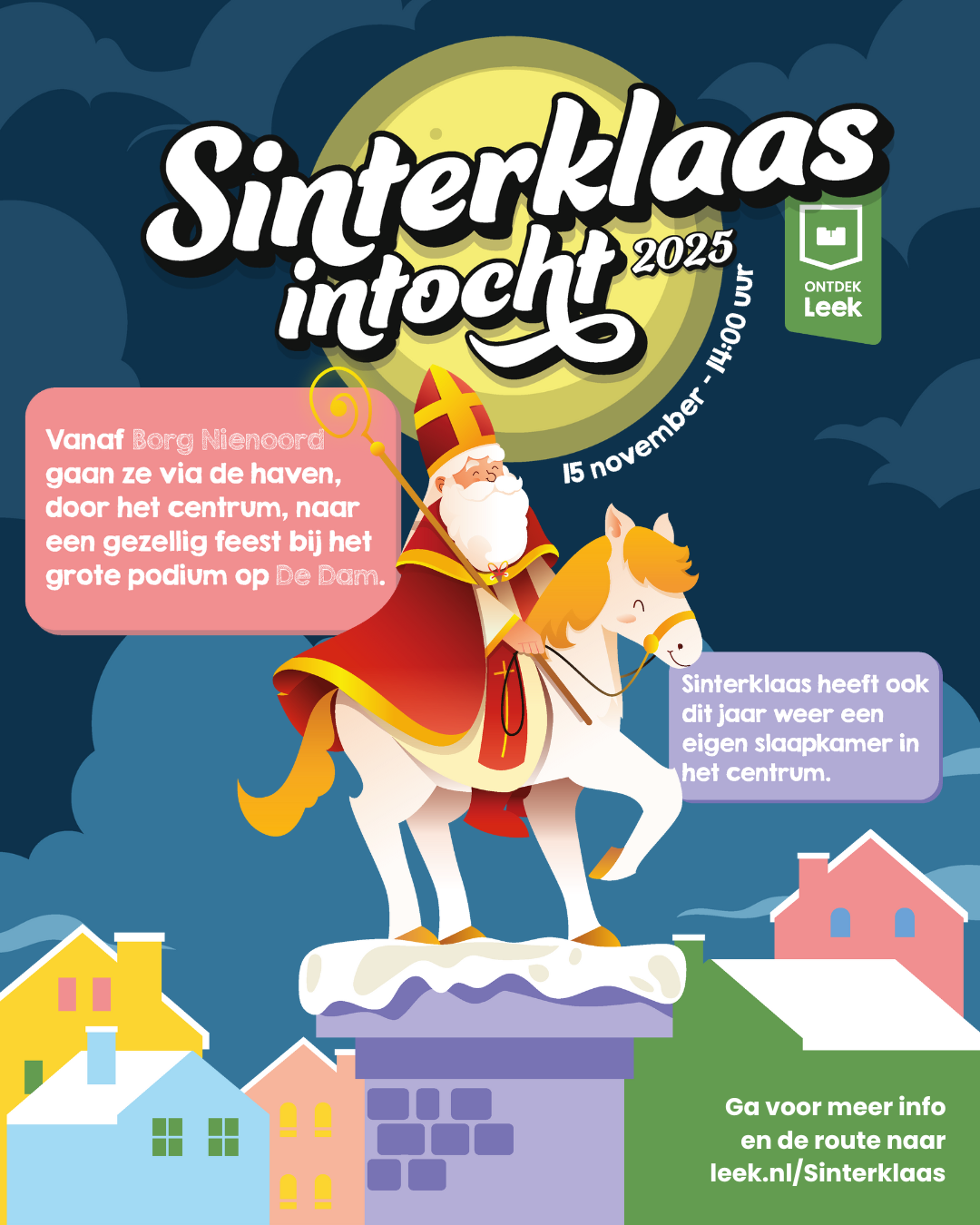 Meer informatie over de intocht en het programma is te vinden op www.leek.nl/sinterklaas.