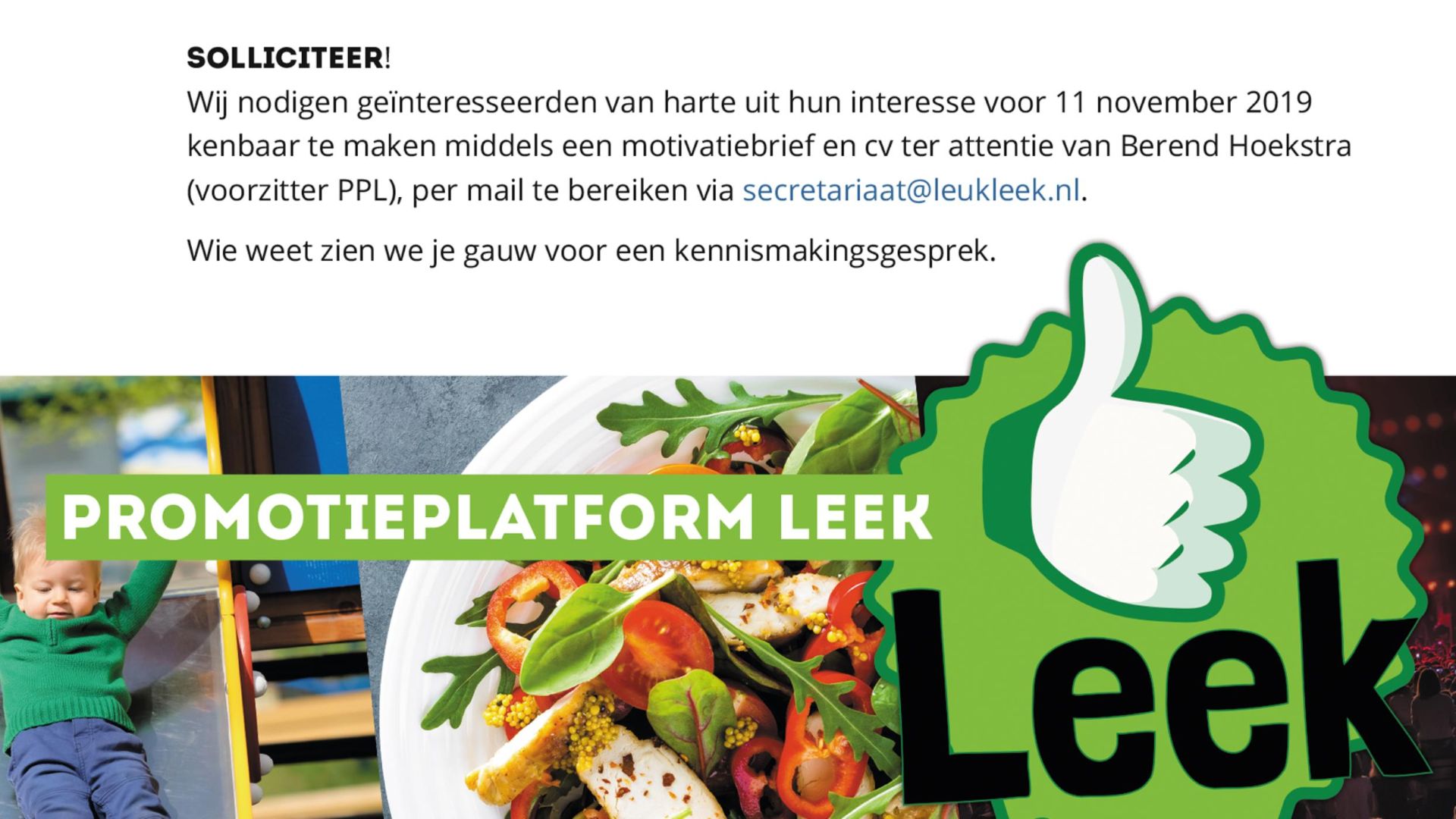Het bestuur van Promotie Platform Leek (PPL) is op zoek naar een zelfstandig