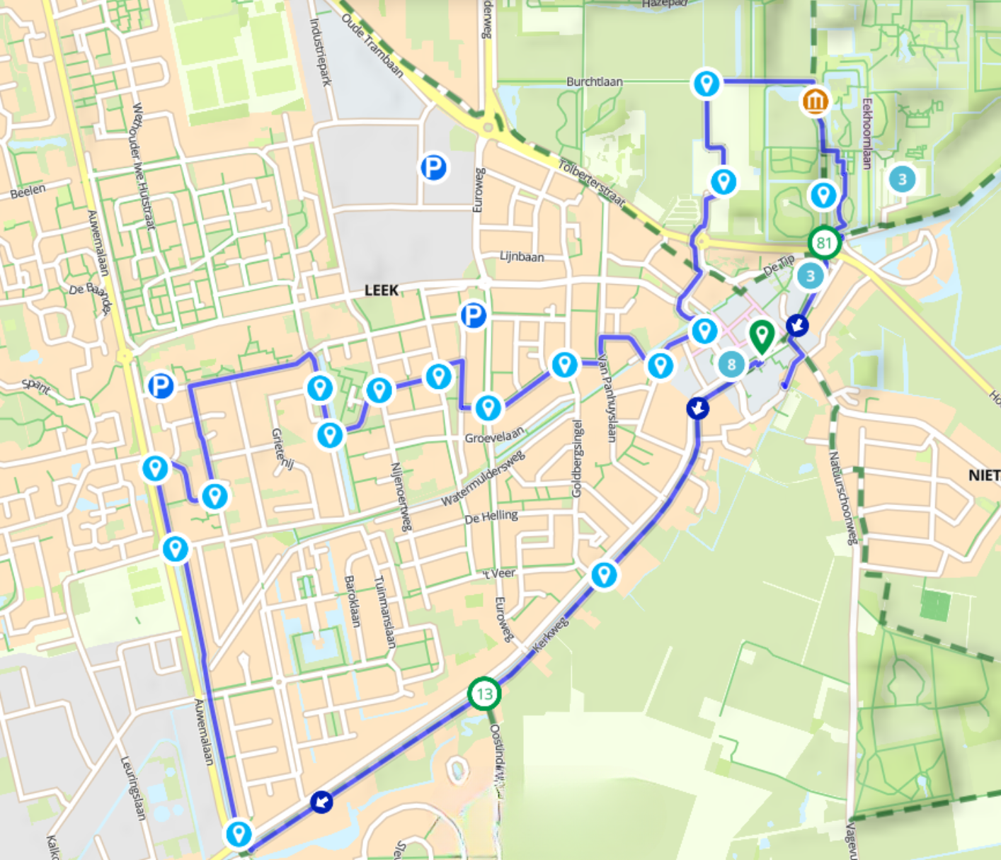 De grote finale. We starten en eindigen op De Dam in het centrum van Leek samen met Dj Nick.